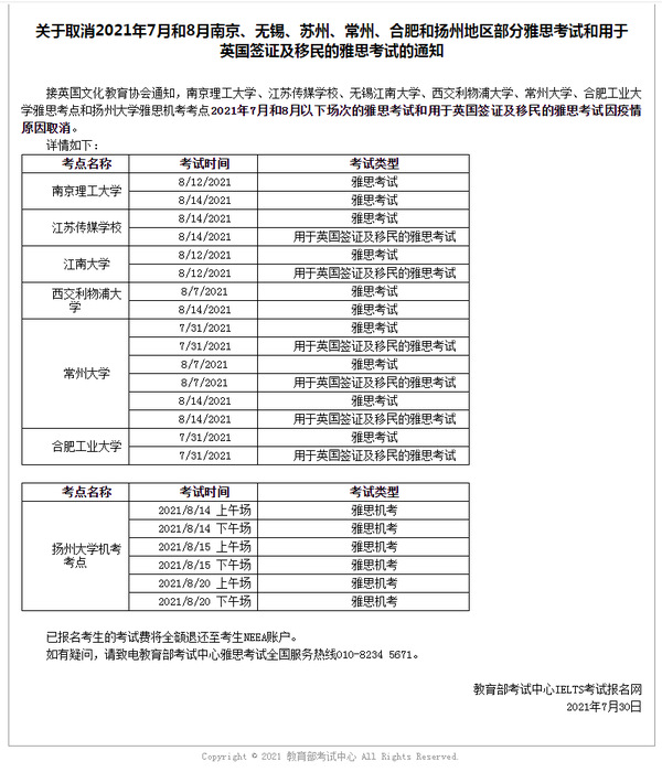 2. 南通市教育技术中心:取消所有8月场GRE普通考试