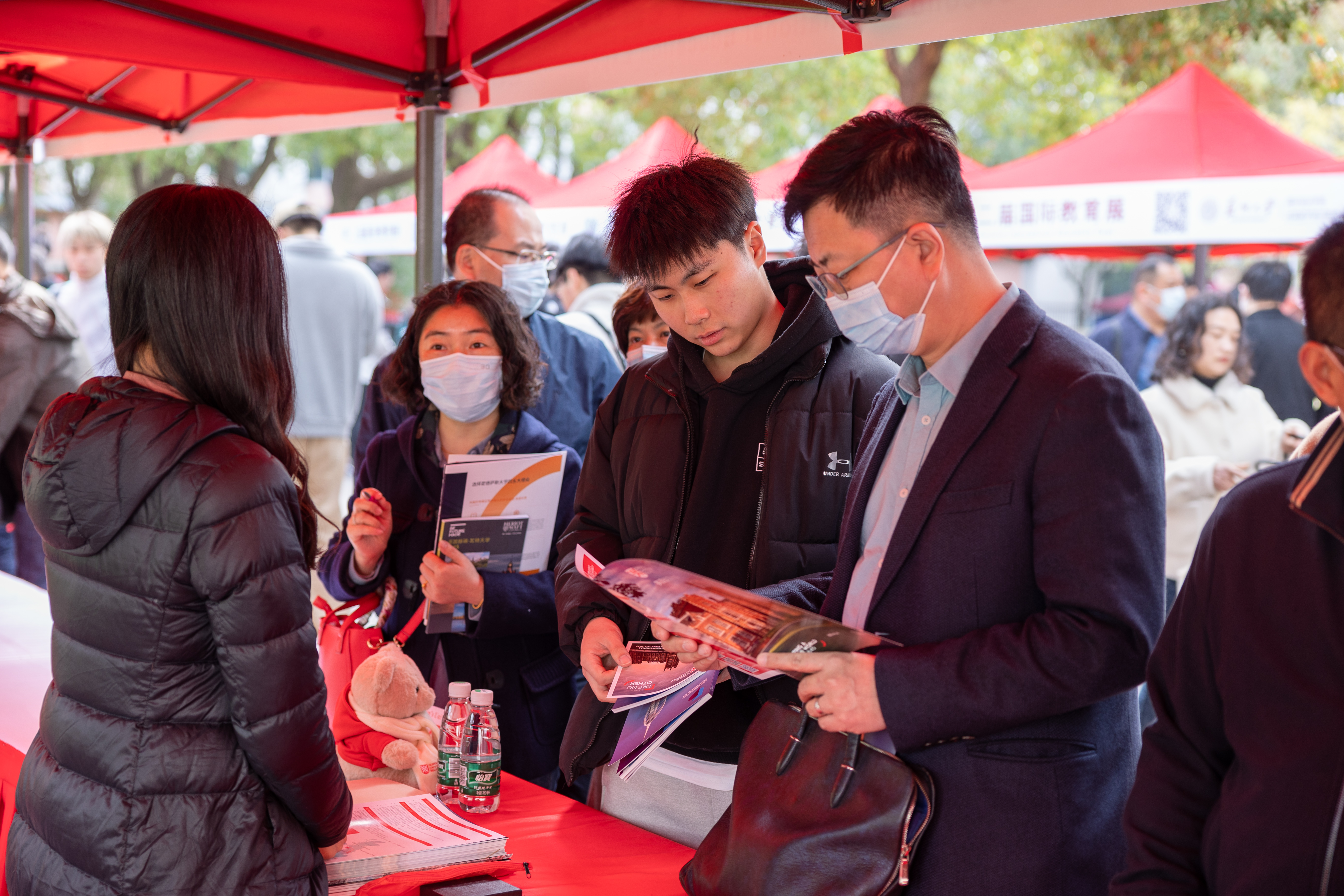 五周年庆典后还举行了第二届国际教育展,萨塞克斯大学、伍伦贡大学、詹姆斯库克大学(新加坡校区)等15所合作院校参展,昆士兰大学举行线上交流会。会展上人头攒动,海外高校老师就学生和家长提出的升学条件、专业选择、相关费用、申请流程等相关问题耐心、逐一解答。