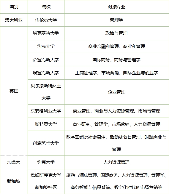 管理学方向专项班海外合作专业:商业经济学、商业信息系统、国际商务、