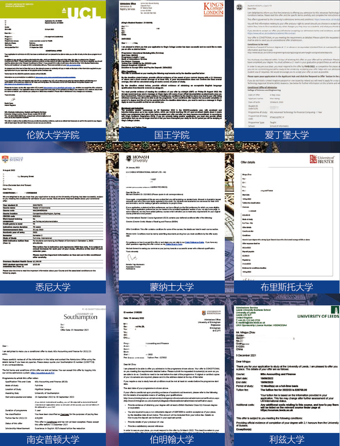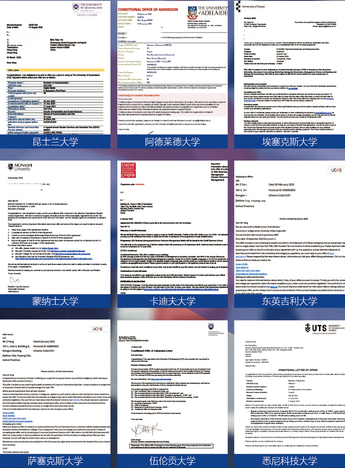 往届学生海外本科录取offer展示:
