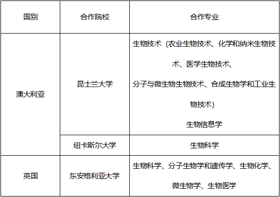 1.生物技术、生物信息学方向仅招收高中理科生(昆士兰大学须有高考化学或生物学科背景,且高中单科成绩达到60%以上;国际高中须有物理或化学或生物学科及格以上成绩)并完成高三学业者;