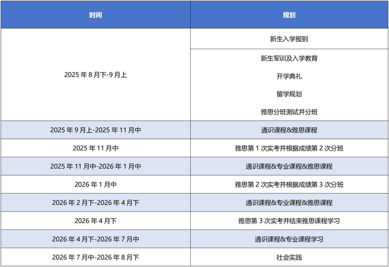 学生自行在雅思考试官网报名缴费(入学后学校统一安排3次雅思考试,考试时间为 2025年11月、2026年1月、2026年4月)雅思考试