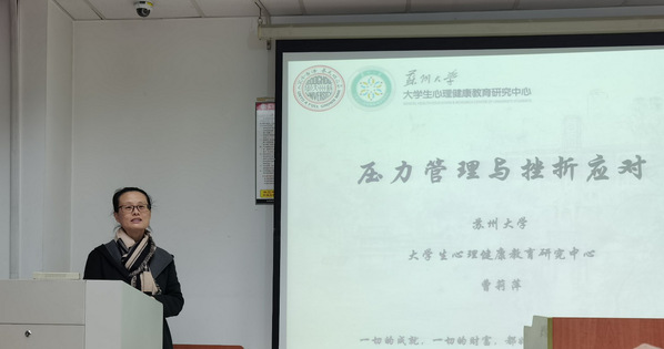 为增强学生的自我心理调适能力,成为一个全面发展的学生。12月11日下午,我院邀请了苏州大学心理学系曹莉萍讲师在我校工科楼208教室开展“压力管理与挫折应对”的心理课程,以提高学生的心理健康水平和综合素质。我校2020级全体学生参加了此次讲座。