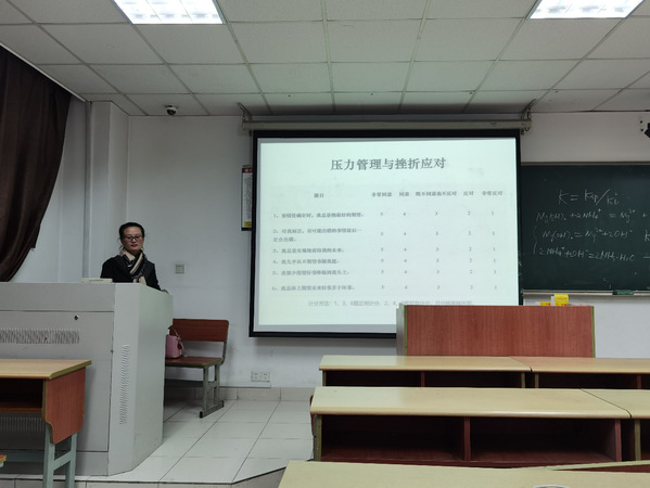 在近一个半小时的讲座中,曹老师讲课内容由浅入深,学术内容由小调查、视频播放、教师答疑等方式呈现。首先,曹老师讲解了什么是心理压力、压力源从何而来。同时指出压力是每个人都会遇到的,同学们不必对此感到恐慌,一定要积极面对。其次,曹老师就如何应对和缓解来自学习和生活中的压力问题,结合多年碰到的案例和工作经验,给同学们做出了一定指导。最后,关于如何提高心理调适能力问题,曹老师给同学们做了针对性地调查,大家也结合了自己的调查结果做出了分析与总结。