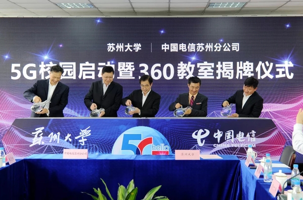 5月19日,苏州大学与中国电信苏州分公司签约共建5G校园,基于5G及VR/AR技术打造的360智慧教室揭牌投入使用,这也是苏大与华为公司共同打造的“云中苏大”的又一个新进展。