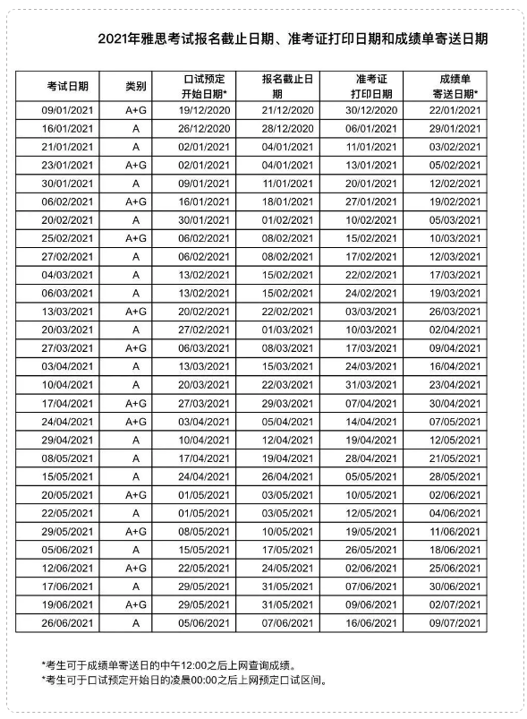 2021年雅思考试时间表