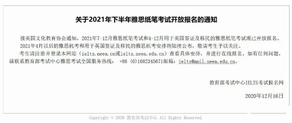 2021年7-12月雅思纸笔考试,4-12月用于英国签证及移民的雅思纸笔考试,现已开放报名。