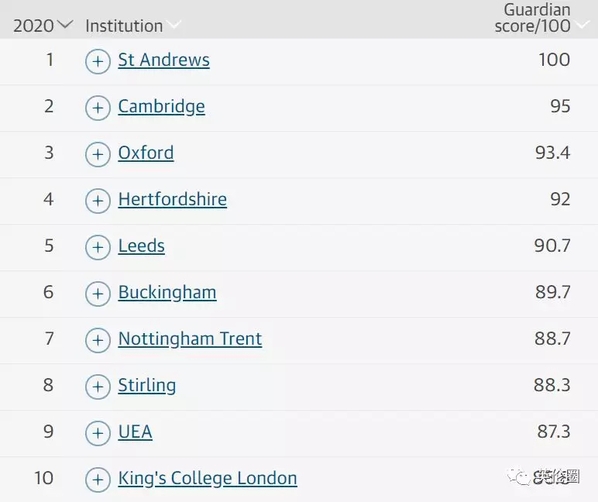 再传喜报!在最新消息公布的《2019卫报大学排行榜》的经济学(Economics)这项中,排行前10的先后是圣安德鲁斯高校、剑桥大学、赫特福德大学、利兹大学、白金汉大学、诺丁汉特伦特高校、斯特灵高校。▼