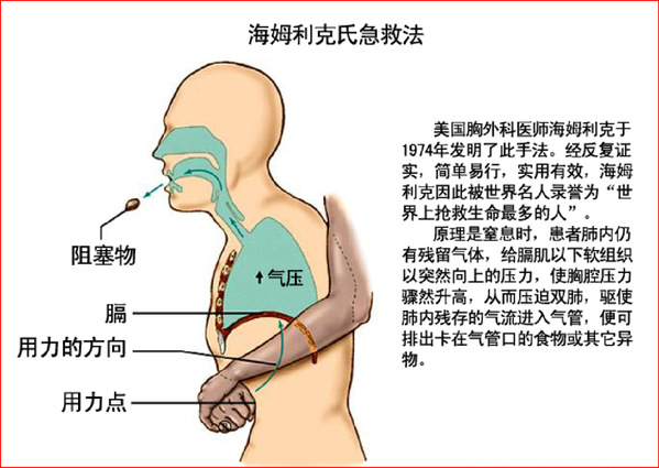接着叶颖芳老师详细讲述了海姆立克急救法具体实施的做法:1.救护者站在受害者身后,从背后抱住其腹部,双臂围绕环其腰腹部。2.一手握拳,拳心向内按压于受害人的肚脐和肋骨之间的部位。3.另一只手成掌捂住在拳头之上,双手急速用力向里和向上挤压。把以上三步进行反复实施,直到异物吐出为止。