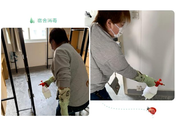 在清洁消毒过程中,全体老师配合宿管人员按照“开窗通风,整理学生物品,擦拭桌、椅、床、门、窗,清洁地面”的操作流程,对宿舍逐一全面卫生清洁;在全部宿舍清扫完毕后,由班主任对各间宿舍进行了细致的卫生验收和消毒杀菌工作。
