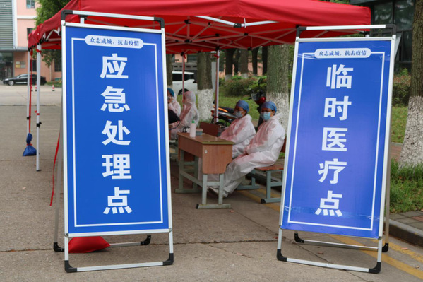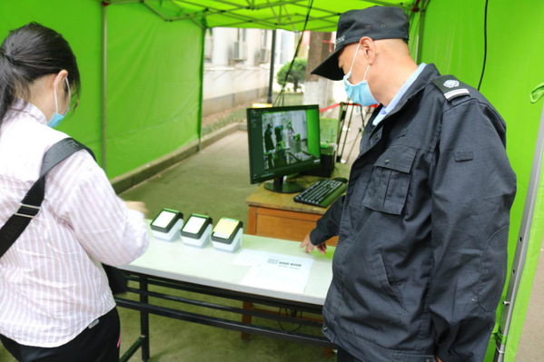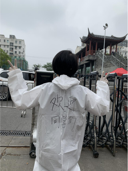 教职工志愿者们佩戴防护用具,在现场引导,在学生进校前进行登记、体温检测、审核学生身份信息和苏康码。