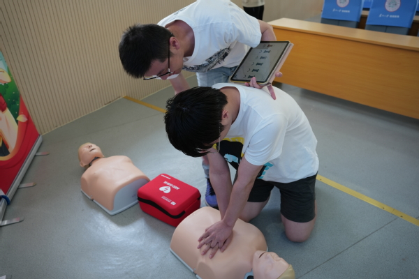 整个培训活动将救护知识理论与救护技能,及日常生活实例相结合,以实际操作为主,方式简洁、生动,使在场学生和老师们了解了急救的基本要领,在轻松愉悦的气氛中掌握了许多急救知识。