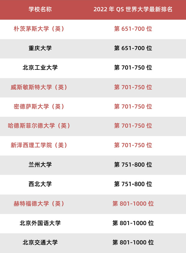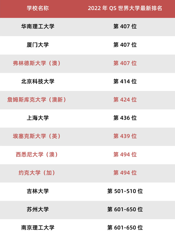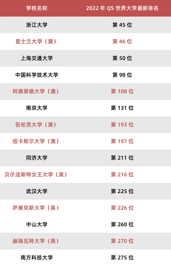 苏州大学国际培训学院(出国留学培训基地)的海外合作院校在2022QS世界大学排名中表现优异。大家可以参考下表,了解我们海外合作院校与中国大学的排名,了解海外合作院校的教育水平。